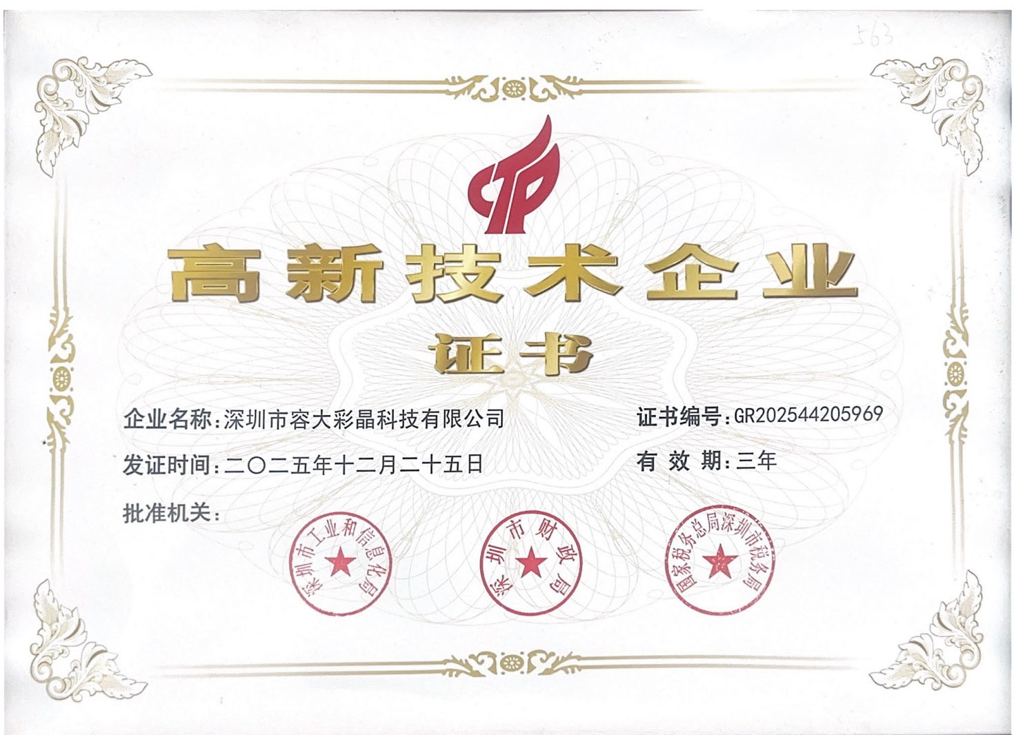 喜訊!容大彩晶順利通過(guò)國(guó)家高新技術(shù)企業(yè)認(rèn)定
